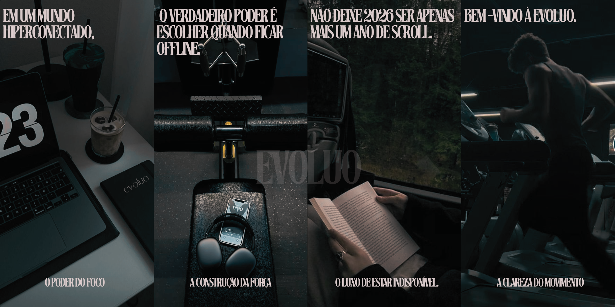 A Evoluo quer te devolver o direito de ficar offline. Não é sobre produzir mais, é sobre viver melhor.
