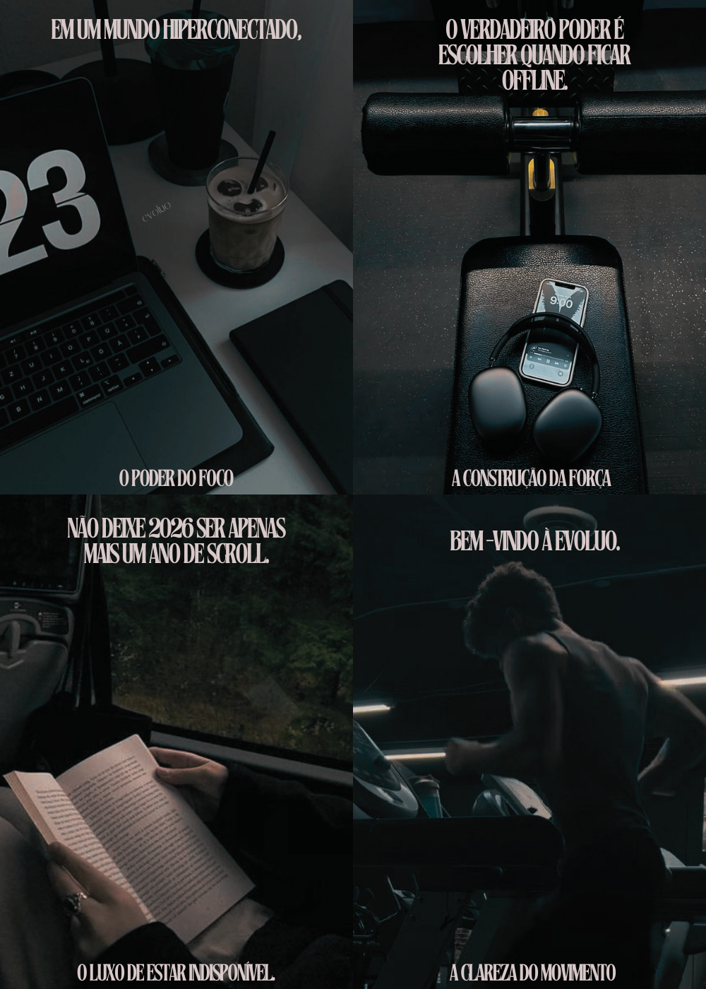 A Evoluo quer te devolver o direito de ficar offline. Não é sobre produzir mais, é sobre viver melhor.